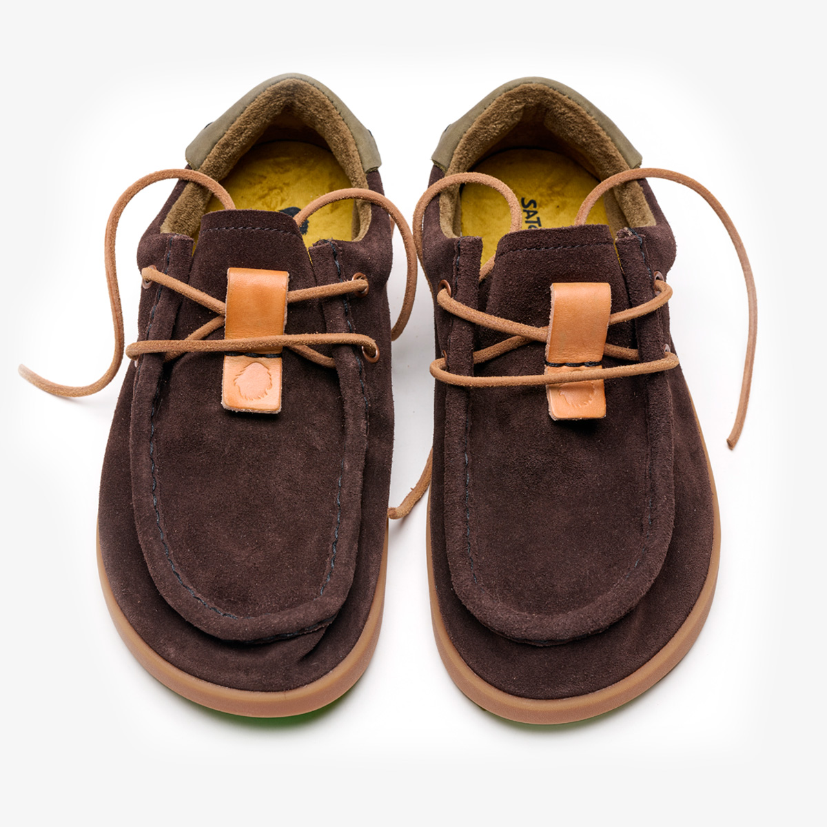 Это зимняя версия нашей модели Kwahu. Выполнена из первоклассной замши и дополнена массивными деталями из бычьей кожи в отделке нубук и full-grain. Полностью на подкладке из 100% органического хлопка с бархатистым «велветовым» ощущением — мягко, уютно и тепло для холодных месяцев. Круглые шнурки сделаны из натуральной кожи, а ручные стежки придают по-настоящему уникальный, рустикальный характер.
