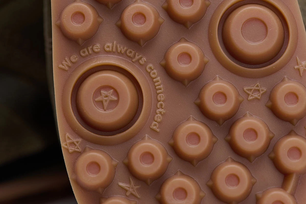 Каждая деталь упаковки Stardust — это дань нашим космическим истокам. И коробка, и папиросная бумага, в которую завернуты кроссовки, полностью украшены звёздами, туманностями и фрактальными узорами. На крышке мы сделали тиснение в виде отпечатков подошв — будто шаг по лунной пыли: тактильный рельеф, который хочется трогать, превращает упаковку в визуальный и сенсорный опыт. Внутри вы найдёте несколько посланий, напоминающих, откуда мы родом и как всё во Вселенной взаимосвязано.